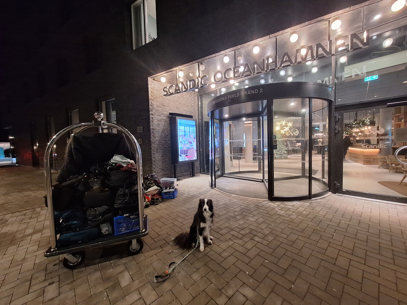 Natürlich interessiert sie der Zollbeamte ausschließlich für den Pass des Hundes, unsere will er nicht sehen. In einem Gemisch aus Dänisch, Schwedisch und Englisch versuchen wir die Sache zu erklären. Als wir ihm die Anmeldebestätigung vom Zollamt zeigen, lässt er Gnade vor Recht walten und winkt uns tatsächlich durch. Puh!