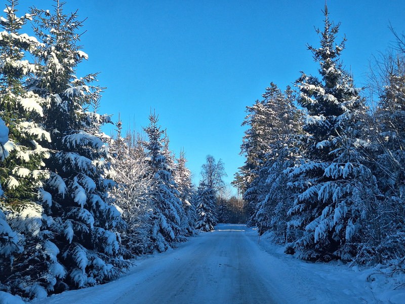 Der Wald ist eine weiße Pracht und der Rundweg sehr kurzweilig. Auch James scheint ganz zufrieden mit dem ausgesuchten Ausflugsziel und findet allerlei Spuren, von denen wir noch nicht mal etwas ahnen. Vom lebendigen Wald mit Vogelzwitschern und Mäusen hinter jedem Stein, den wir aus dem Frühjahr kennen, ist allerdings nichts zu merken. Zwei Eisangler zeigen uns stolz ihren Fang (zwei Flussbarsche) und erzählen, dass der Seeadler wohl mehrere Runden über den See gedreht hat. Gesehen haben wir ihn leider nicht, aber konnten in dem kurzen Gespräch unsere schwedischen Sprachkenntnisse auffrischen.