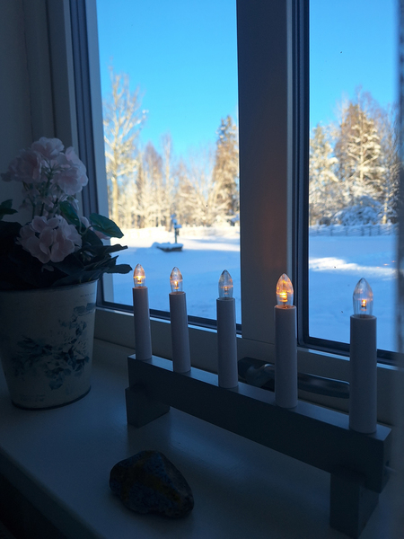 Wir haben zwischenzeitlich besprochen, dass es keinen Sinn macht, den Urlaub abzubrechen. Was mit Annikas Wagen ist, erfahren wir eh erst nach dem Wochenende und wenn man schon warten muss, dann kann man es sich dabei auch schön machen. Also die ganze Bagage wieder runter (das Gesicht des Portiers, als er das sieht, ist köstlich), einladen und ab nach Rydaholm! Ein kurzer Stopp beim ICA in Ljungby muss natürlich sein, dann empfängt uns das Häuschen im tief verschneiten Wald bei strahlendem Sonnenschein. Zum vorerst letzten Mal packen wir unser Gepäck aus und trinken dann erst einmal in Ruhe einen Kaffee.