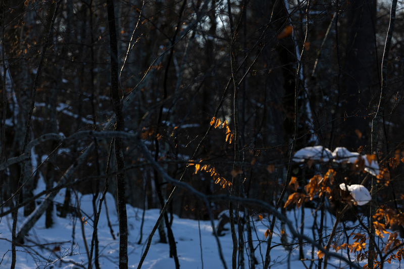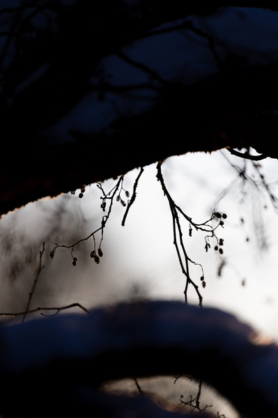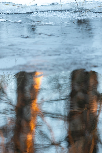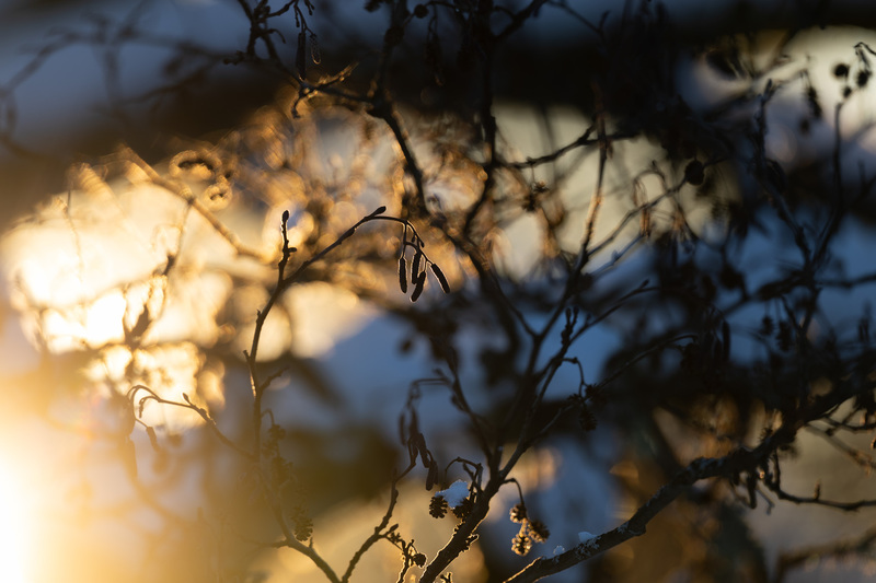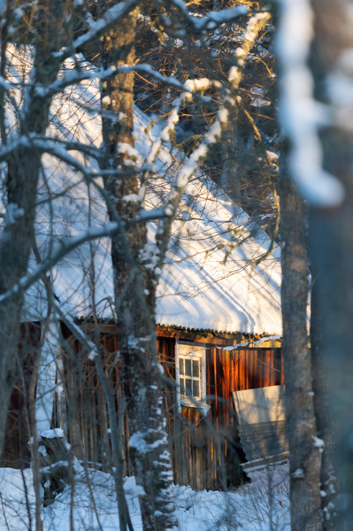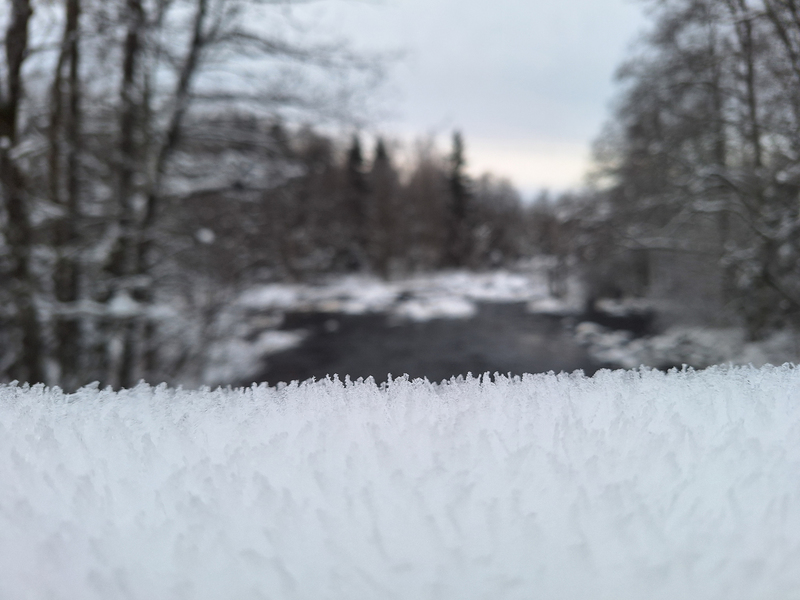 Lange ruhen wir aber nicht, das Wetter ist zu schön, um es zu verpassen. Nicht weit vom Haus gibt es einen kleinen Fluss, an dem wir entlangspazieren und die Winterwelt um uns herum genießen. Es dämmert bereits (Sonnenuntergang ist um 15.45 Uhr), als wir wieder am Haus ankommen.