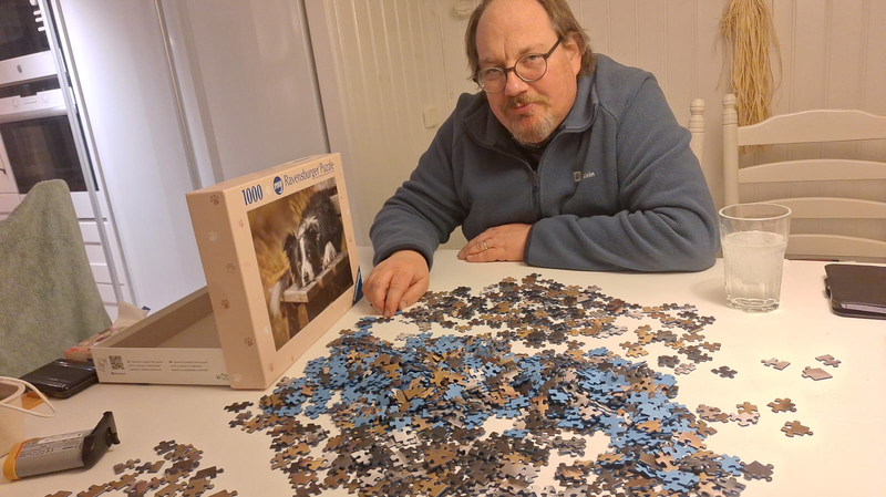 Nach einer Fika und dem Sichten von Clemens Fotos wird weiter gepuzzelt. Es ist ein bisschen ein Puzzle aus der Hölle, da es zu 95% aus einfarbig ocker- und braunfarbigen Teilen besteht (ob das die Absicht meiner Helferinnen war, mich endgültig in den Wahnsinn zutreiben?), aber die besondere Schwierigkeit spornt auch enorm an und so versinken Clemens und Annika in ein meditatives Teilchensuchen. Als akustischen Hintergrund dient „Barmbek Bump“, eine Hörbuchserie vom Autor von „Frühstück bei Stefanie“ mit Bjarne Mädel und Olli Dittrich – sehr zu empfehlen!!!