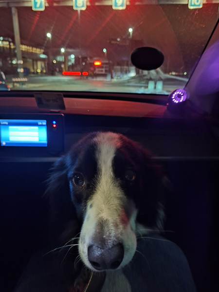 Während wir so sitzen und Warten fällt Annika plötzlich siedend heiß ein: Der EU-Pass vom Hund ist noch in der Mittelkonsole vom Volvo! Zwar hat Annika den Hund morgens noch online beim Zoll angemeldet, ohne Pass darf er aber trotzdem nicht einreisen. Da wir aber noch nie kontrolliert wurden, wird das wohl kein Problem sein und ändern kann man es jetzt auch nicht mehr.