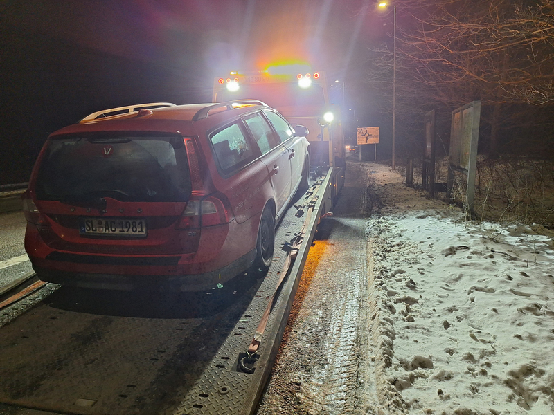 Dann heißt es warten. Kurz lassen wir den Hund raus, aber mehr als die 100m in der Parkbucht auf- und abgehen ist nicht drin, außerdem ist es weiterhin empfindlich kalt. Also wieder rein ins Auto, das allerdings temperaturtechnisch auch so langsam nicht mehr angenehm ist. Und die ganze Zeit die Frage, wie es nun weitergeht. Wie kommen wir nach Schweden ins Hotel? Was passiert mit dem Volvo? Müssen wir den Urlaub abbrechen? Und und und…