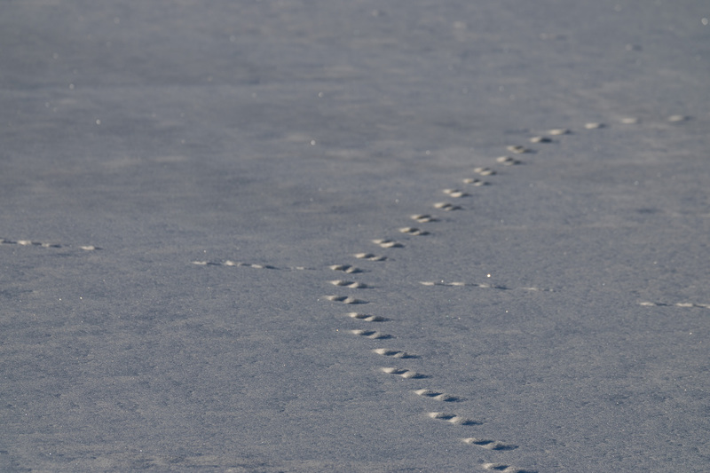 Dann geht es auch schon los zu unserem Lieblingsziel, dem Bjukärr im Nationalpark Aasnen. Hier sind schöne Wanderwege und die kleine Halbinsel hat viel zu bieten. Der Schnee und die zugefrorenen Seen sorgen für eine schöne winterliche Stimmung. Lauter Tierspuren kreuzen unseren Weg und wir versuchen diese zu bestimmen. Sie verraten viel darüber, was hier los ist, wenn gerade keine Menschen unterwegs sind.